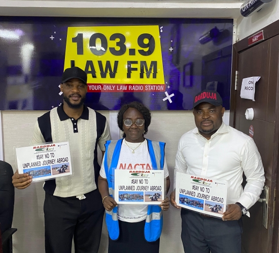 Morenike Omaiboje, State Coordinator, NACTAL LAGOS granted an interview on behalf of the Chapter, along with RARDUJA's Exec. Director, Hon. Eddy Duru and Barr. Felix Duru also of Lagos Chapter, at RADIO _103.9 LAW FM_ Lagos, to mark the 2025 World Day Against Trafficking in Persons (celebrated annually on 30th July).